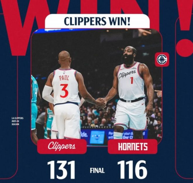 哈登今天也是拼尽全力26投17中拿下55分3篮板7助攻,表现得非常卖力。在哈登的带领下,快船队顶住压力,最终是以131比116击败了黄蜂队,缓解了队内压力。老将克里斯-保罗今天替补出战23分钟,贡献3分4篮板8助攻,跟哈登合砍58分。