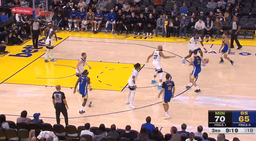 第三节,上来勇士连续失误,森林狼反击迅速一波6-0反超4分,随后勇士库里站出来连突带投止血,紧跟斯宾塞、巴特勒相继得分反超3分,随后森林狼戈贝尔、兰德尔强攻内线得分,勇士库里回应,但紧跟兰德尔、迪文琴佐相继三分领先6分,随后森林狼进攻断电,勇士穆雷站出来连得4分,紧跟波斯特、巴特勒相继得分,一波10-0再度反超4分,三节结束,勇士91-88森林狼。