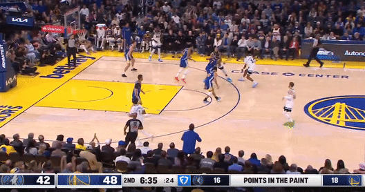 库里突破高难度挑篮打进